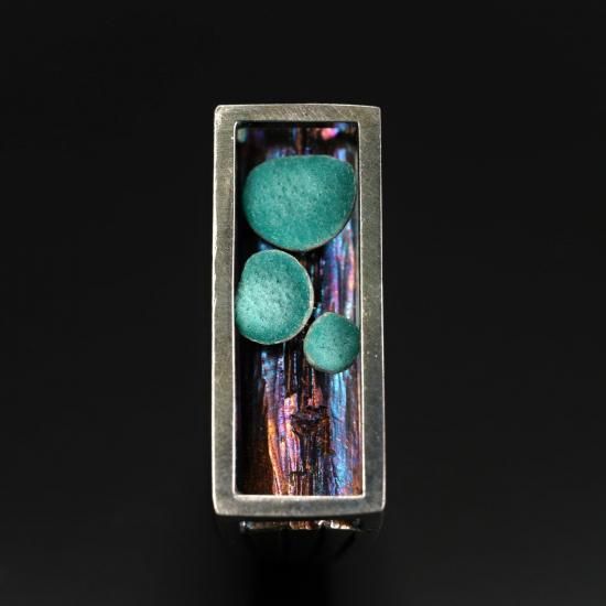 鮮やかな緑のグラデーションをエナメル技法(七宝)で表現しています。
