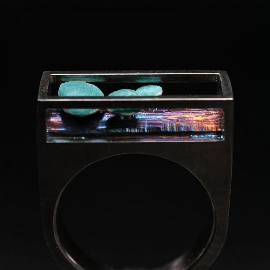 標本をそのまま展⽰ケースに納めたようなリングに仕⽴てました。