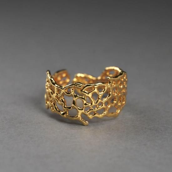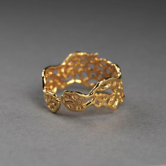 ヘビヌカホコリが指を覆う、華奢なデザインのリングです。