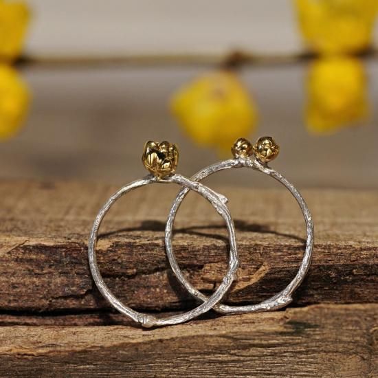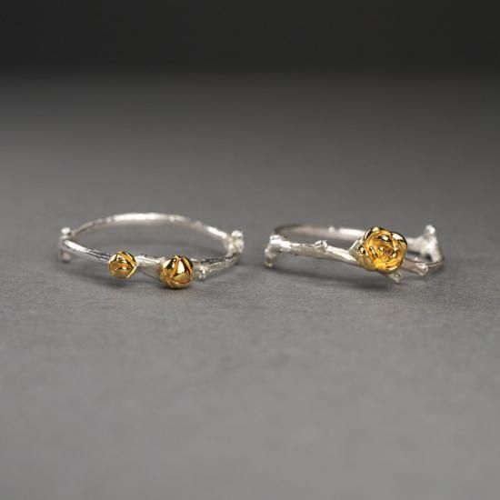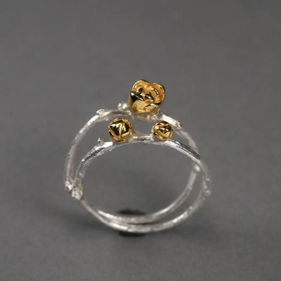蝋梅の花と蕾、枝をモチーフにしたシルバーリングです。