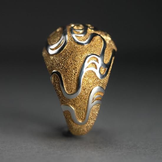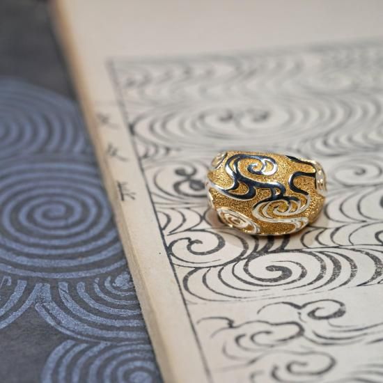 日本の波紋様と尾形光琳の国宝「紅白梅図屏風」から着想を得たリング。