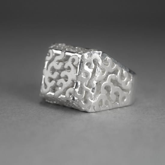 透かし系のリングはゴリっとしたイメージになりがちなのですが、柔らかな印象になるように気を配られた作品。