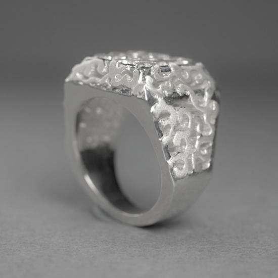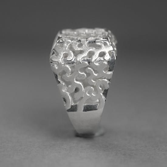 ヨーロッパ風の印台リングのデザインと日本古来の波紋様の組み合わせ。