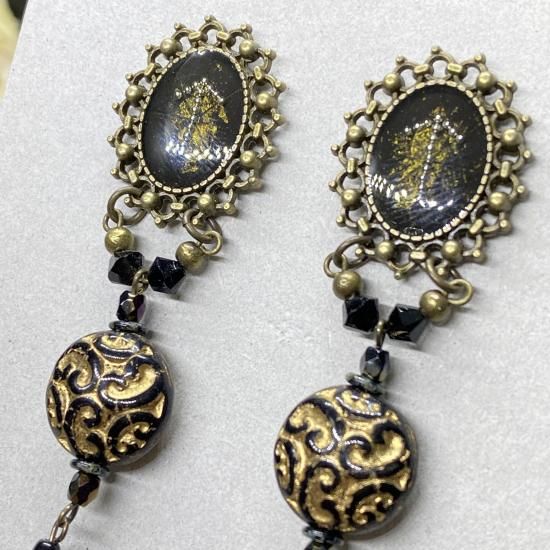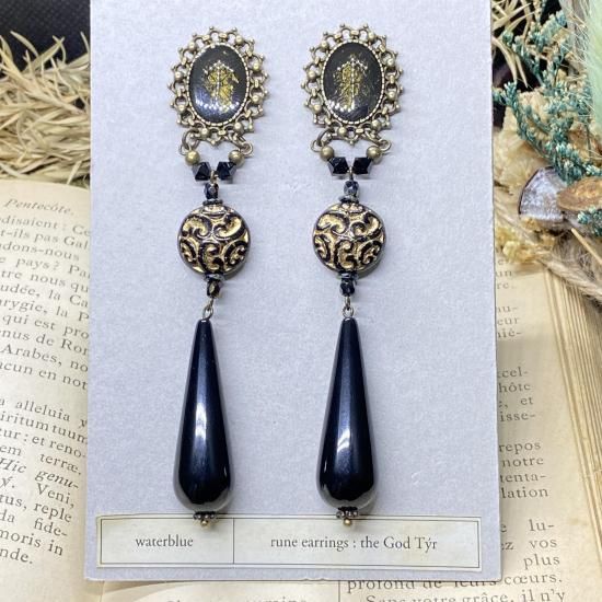ルーン文字を描いたオリジナルパーツを使ったイヤリング。