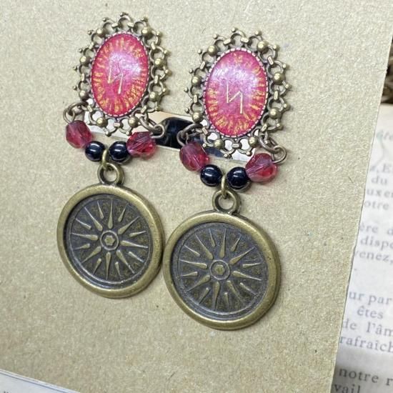ルーン文字を描いたオリジナルパーツを使ったイヤリング。